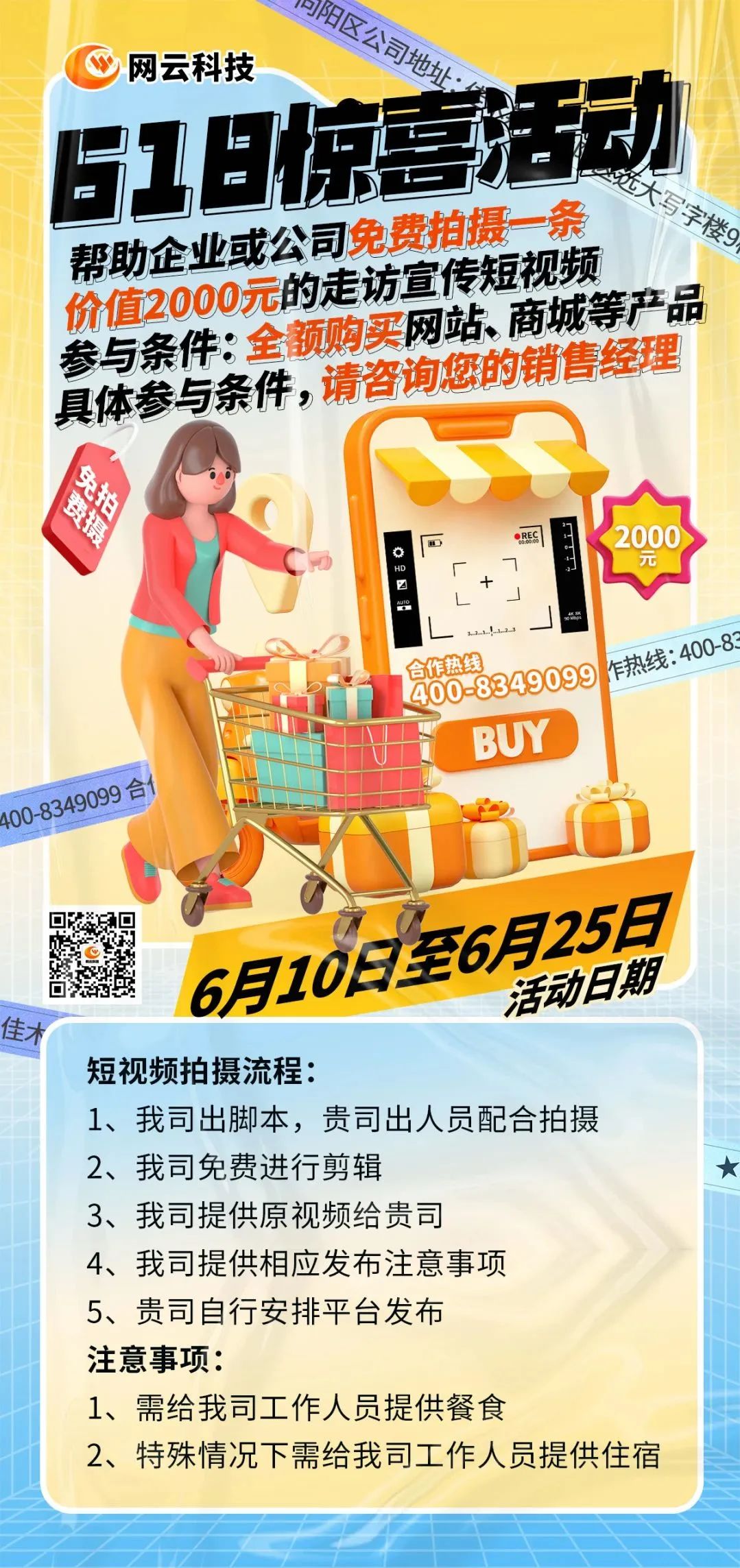 我們?yōu)榱私o企業(yè)解決這一問題難點(diǎn),在6·18活動(dòng)期間,特推出助力企業(yè)的活動(dòng)-為新合作的企業(yè)免費(fèi)拍攝一條走訪宣傳短視頻。