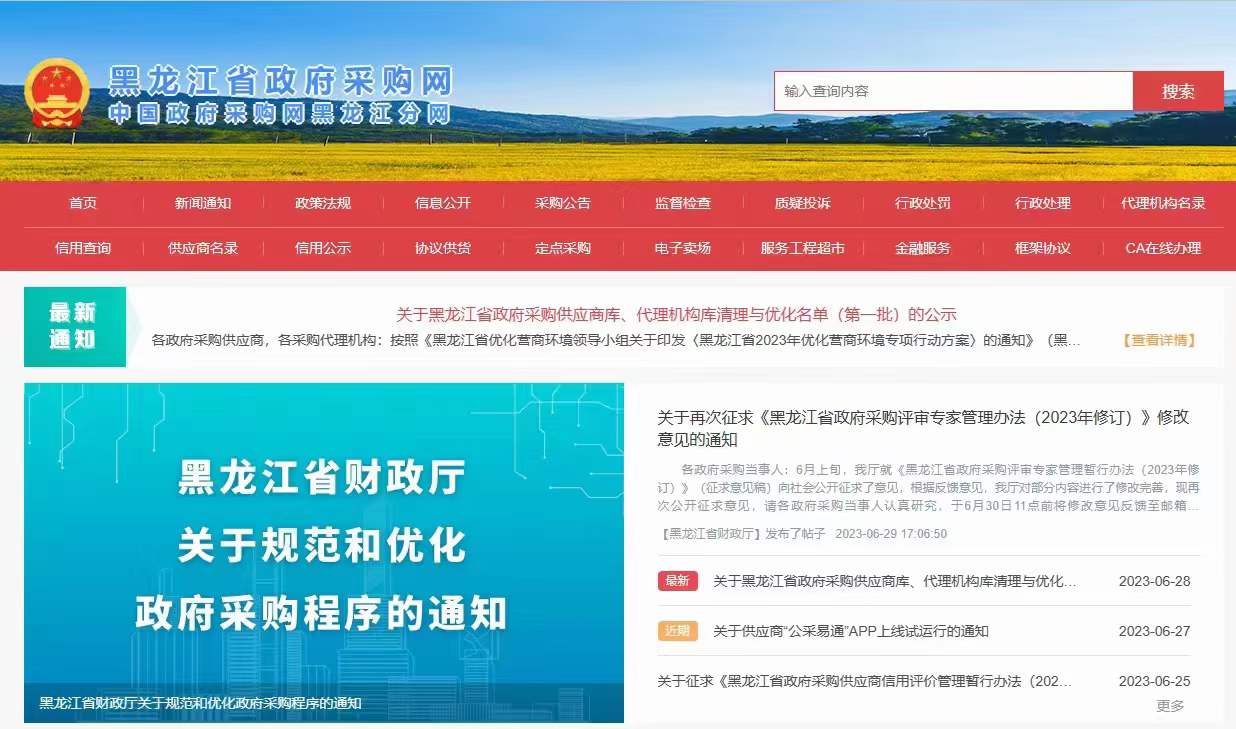 申請入駐黑龍江省政府采購網(wǎng)