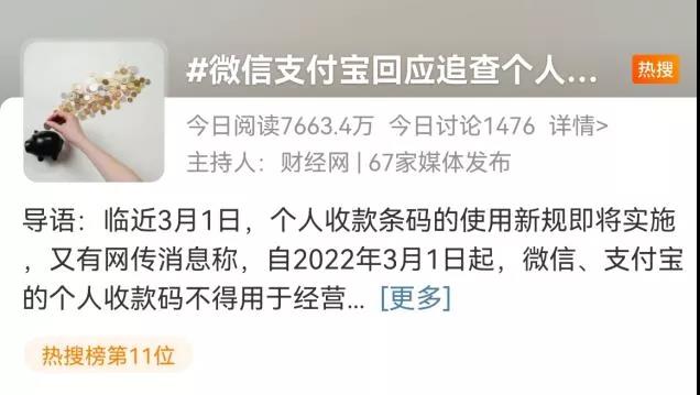 近日,“微信支付寶回應(yīng)追查個人收款碼近4年數(shù)據(jù)”這一話題沖上微博熱搜。