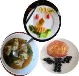 粗糧點(diǎn)心、薺菜肉餛飩、時(shí)令蔬果拼盤(pán)