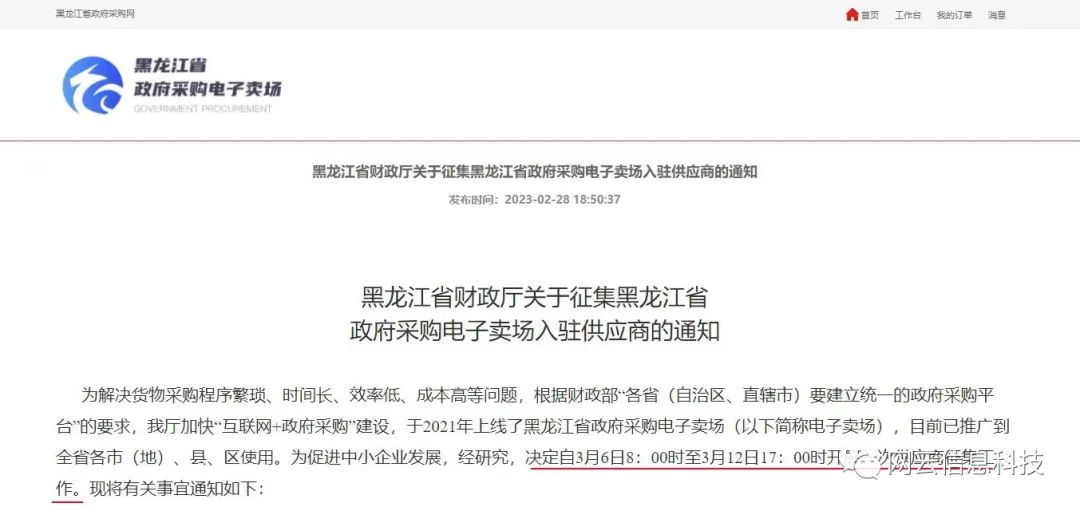 緊急通知!黑龍江政府采購(gòu)網(wǎng)電子賣場(chǎng)將于五日后開(kāi)展供應(yīng)商征集工作!